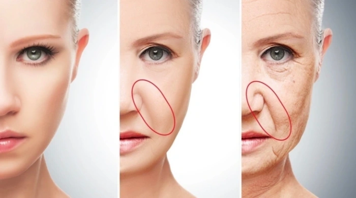- ترهل الجلد: ينخفض الكولاجين والإيلاستين، مما يؤدي إلى فقدان المتانة.