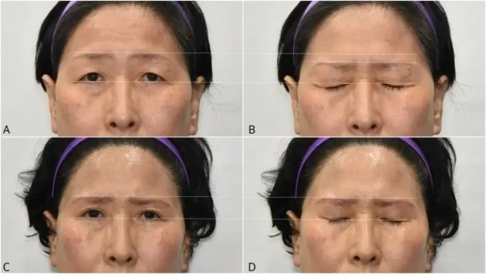 术后因习惯性动用额肌睁眼可能导致表情僵硬(摘自朴恩奎博士期刊)