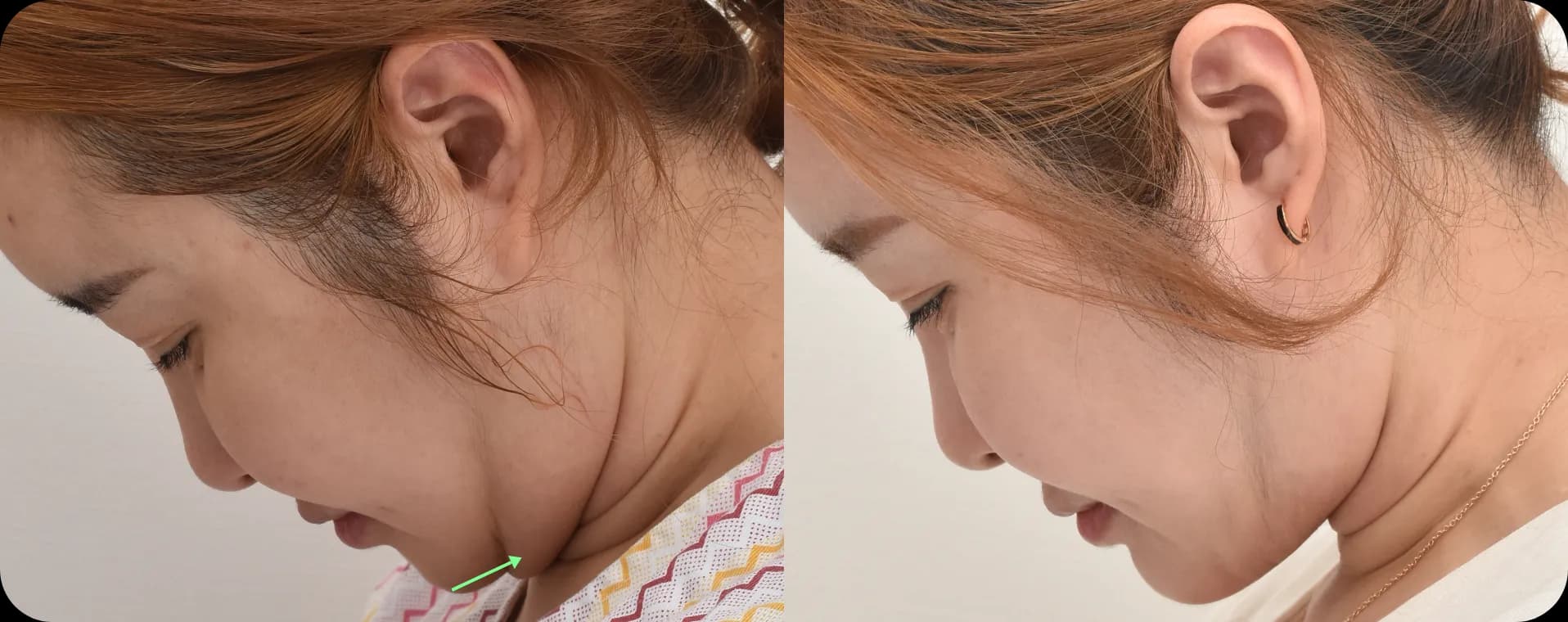 - 턱 밑 침샘 보톡스를 더 이상 맞지 않아도 됩니다.